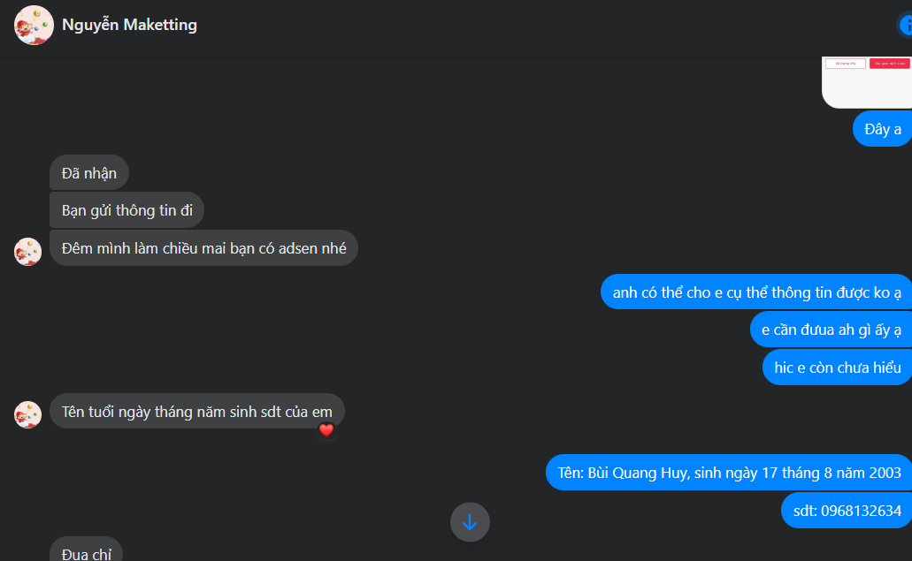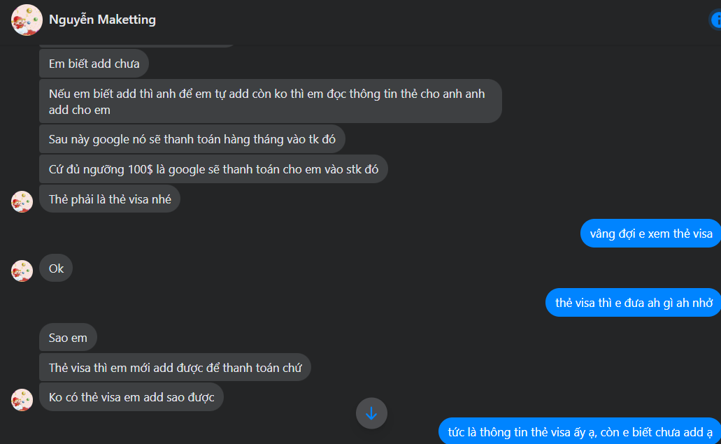 Lừa đảo hành vi tạo tài khoản Adsense để lợi dụng lấy thông tin cá nhân thẻ VISA.